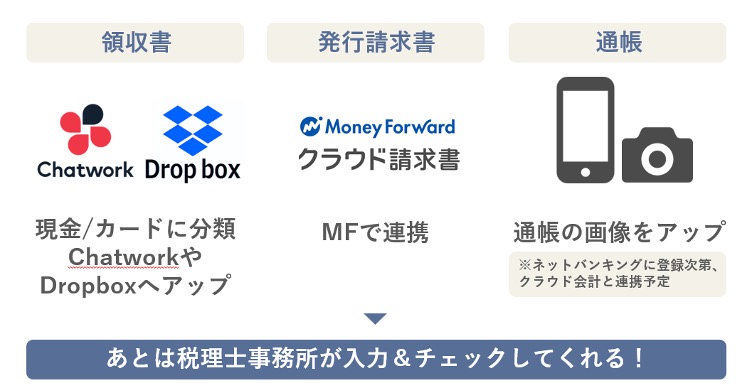 領収書はチャットワークやDrop boxにUPし連絡するだけになり、請求書もMFと連携したことで自動でデータが入るようになりました。領収書を写真にするのも忙しくなってきた際は、「郵送でまとめて送ってもらっていいですよ」と言ってくださるので助かっています。