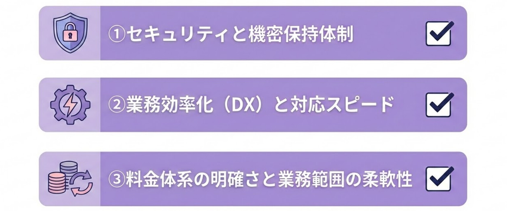 単に「安いから」という理由だけで選んでしまうと、結局はコミュニケーションのコストが増えたり、経理の質が下がってしまったりするリスクがあります。